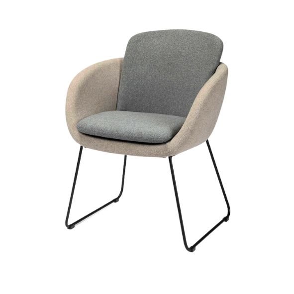 כיסא אורח בעיצוב מודרני עם רוחב 56 ס"מ, עומק 55 ס"מ וגובה משענת גב 77 ס"מ. המושב זמין במבחר צבעים ומגיע עם גב פלסטיק או מרופד. אפשרויות לרכוש עם או בלי משענות ידיים בצבעי שחור ואפור, ורגליים בגוון שחור, אפור או ניקל. הכיסא כולל אפשרות חיבור כסאות בשורה באמצעות מחבר וניתן לערום בקלות.