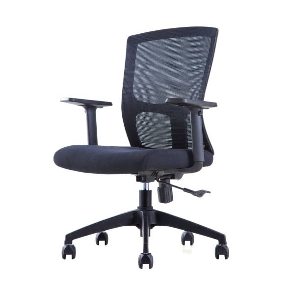 כיסא מחשב ארגונומי עד 90 ק"ג, עם תמיכה לומברדית לישיבה ממושכת ונוחה. כולל מושב מרופד, גב רשת מאוורר, מנגנון להתאמת זווית וגובה הגב, ידיות מתכווננות וגלגלי סיליקון המותאמים לפרקט.